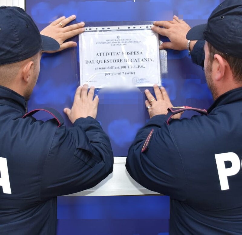 La polizia ha disposto la sospensione per sette giorni dell’attività di un centro scommesse a Caltagirone, ritenuto abituale punto di ritrovo per persone con precedenti penali. Il provvedimento, è stato notificato al titolare dagli agenti che hanno apposto i sigilli.
