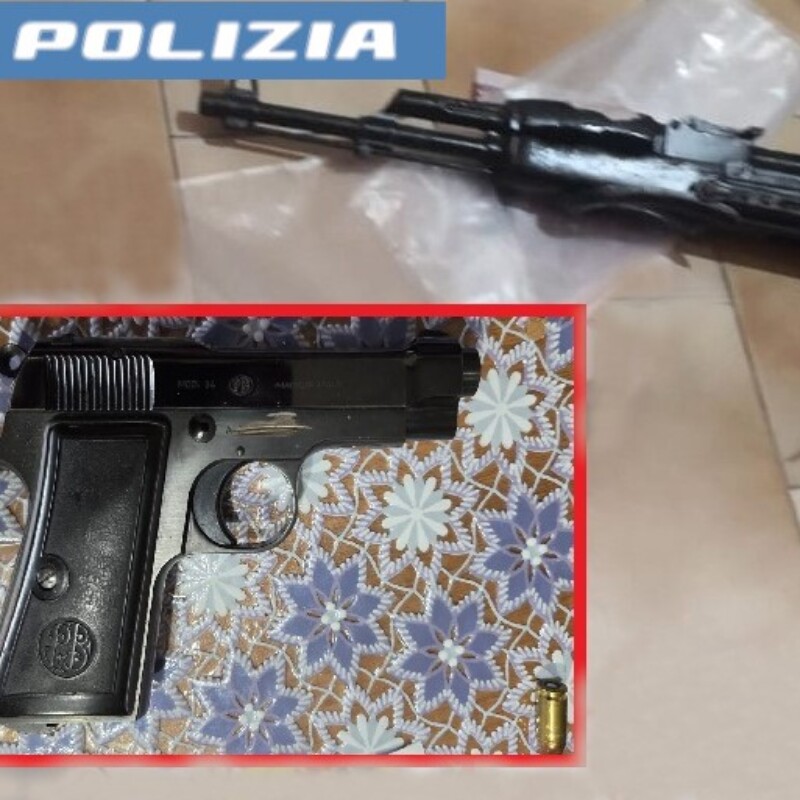 L’indagata prima di aprire la porta di casa, ai poliziotti della sezione antidroga della squadra mobile, ha buttato dal balcone un borsone con una pistola semiautomatica con matricola abrasa con proiettili e la droga. In casa sono stati trovati un fucile mitragliatore AK47 completo di caricatore e 20 proiettili.